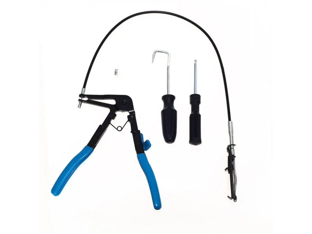 - Зажим на конце гибкого шнура позволяет добраться до стяжек в труднодоступных местах.