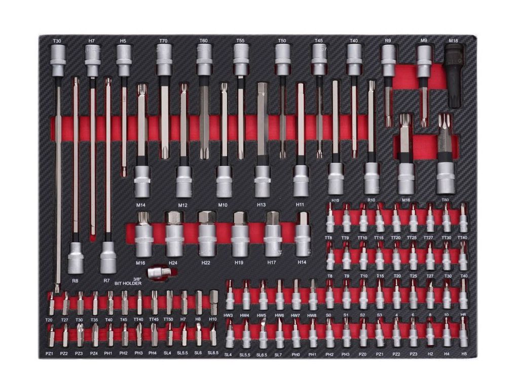 - Головки 1/4" с битами: Torx - T8/T9/T10/T15/T20/T25/T27/T30