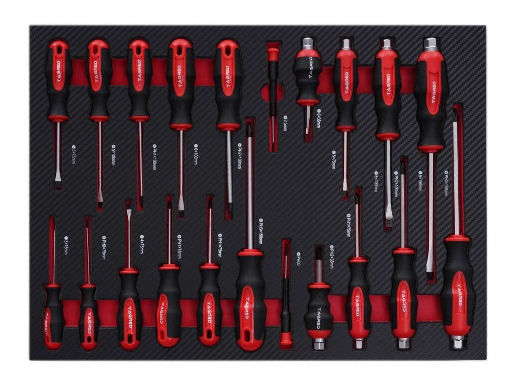 - Набор крестовых и плоских отверток: PH 3x150 MM, 8x150 MM, PH 2X100 MM, 6x100 MM, PH 1x75 MM, 5x 75 MM, PH 2x38 MM, 6x38 MM, 2.5 MM, 2.5 MM 0 ММ, 5x75 мм, 6x100 мм, PH 1x75 мм, PH 1x100 мм, 4x75 мм, 5x100 мм, PH 0x75 мм, PH 1x75 мм, 3x75 мм