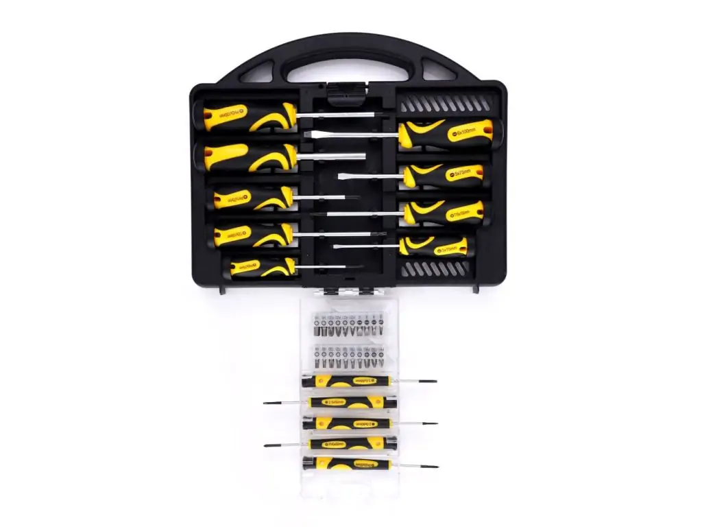 Набор отверток и битов TAGRED TA1135, 34 шт – изготовлен из высококачественных материалов, включая хром-ванадиевую сталь, а ручки – из прочного пластика с мягким покрытием, которое предотвращает скольжение инструментов в руке! Большие и мягкие ручки позволяют создавать больший крутящий момент для облегчения закручивания. Четкая маркировка на ручке облегчает выбор насадки для использования. Все компоненты изготовлены по самым высоким стандартам и помещены в очень крепкий и практичный кейс.