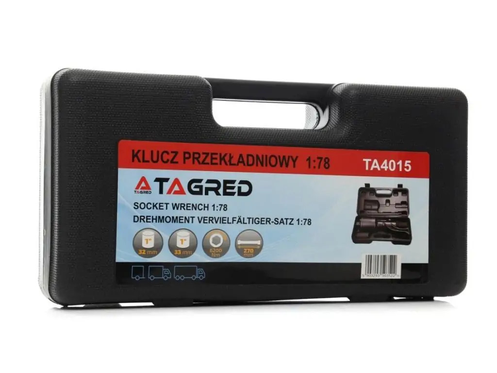 Планетарный зубчатый ключ для колес TAGRED TA4015 с максимальным крутящим моментом 6200 Нм и передаточным отношением 1:78 предназначен для работы с креплениями колес грузовиков, автобусов, строительной и сельскохозяйственной техники. Планетарный редуктор обеспечивает высокую эффективность работы с сильно затянутыми, ржавыми и прикипелыми креплениями, создавая высокий крутящий момент при приложении минимального усилия. Хвостовик 1” оптимален для работы с большой техникой.