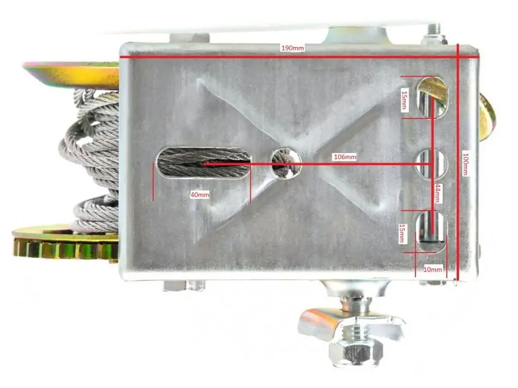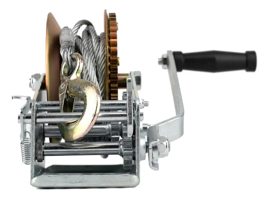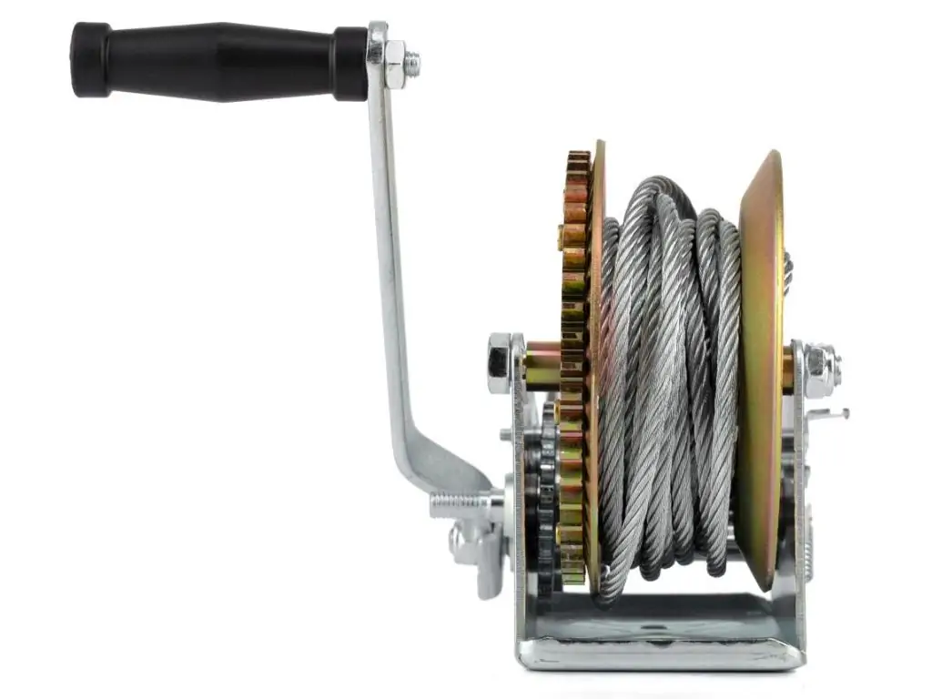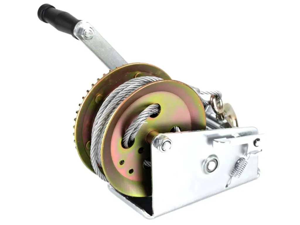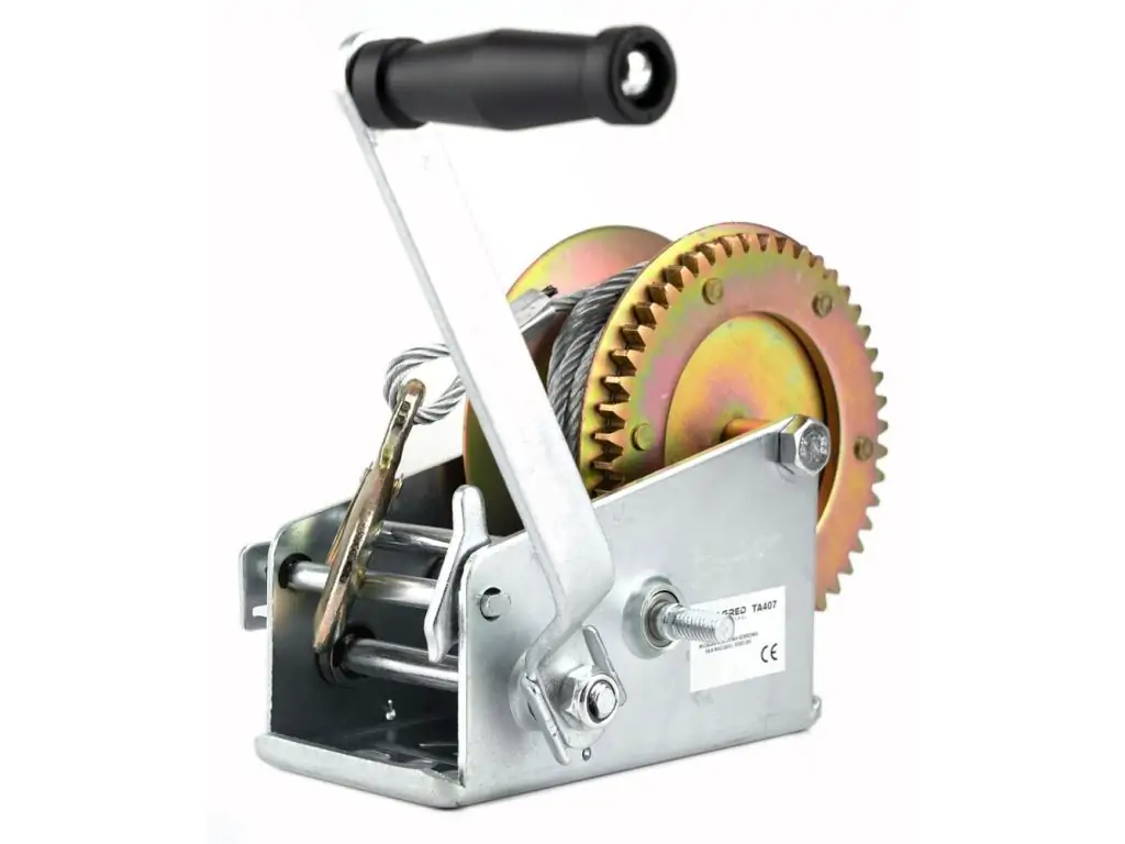 Кривошипная лебедка TAGRED TA407 – изготовлена из высококачественной конструкционной стали. Литый крюк имеет возвратную пружину. Для управления устройством используется ручная рукоятка, а также храповой механизм для втягивания и извлечения предметов. Идеальное оборудование для извлечения, связывания, закрепления и перетаскивания тяжелых и больших предметов. Имеет блокировочный крюк и предохранитель с храповой пружиной из закаленной стали.