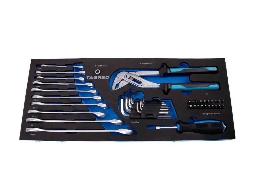 Ящик с инструментами TAGRED TA209 – чрезвычайно вместительный и прочный ящик, вмещающий все необходимые инструменты, биты, торцевые головки и гаечные ключи высочайшего качества. Ящик изготовлен из прочного металла, что гарантирует долговечность и надежность. Кроме того, есть возможность защитить содержимое ящика с помощью подвесного замка, который можно приобрести отдельно, что обеспечивает дополнительный уровень безопасности.