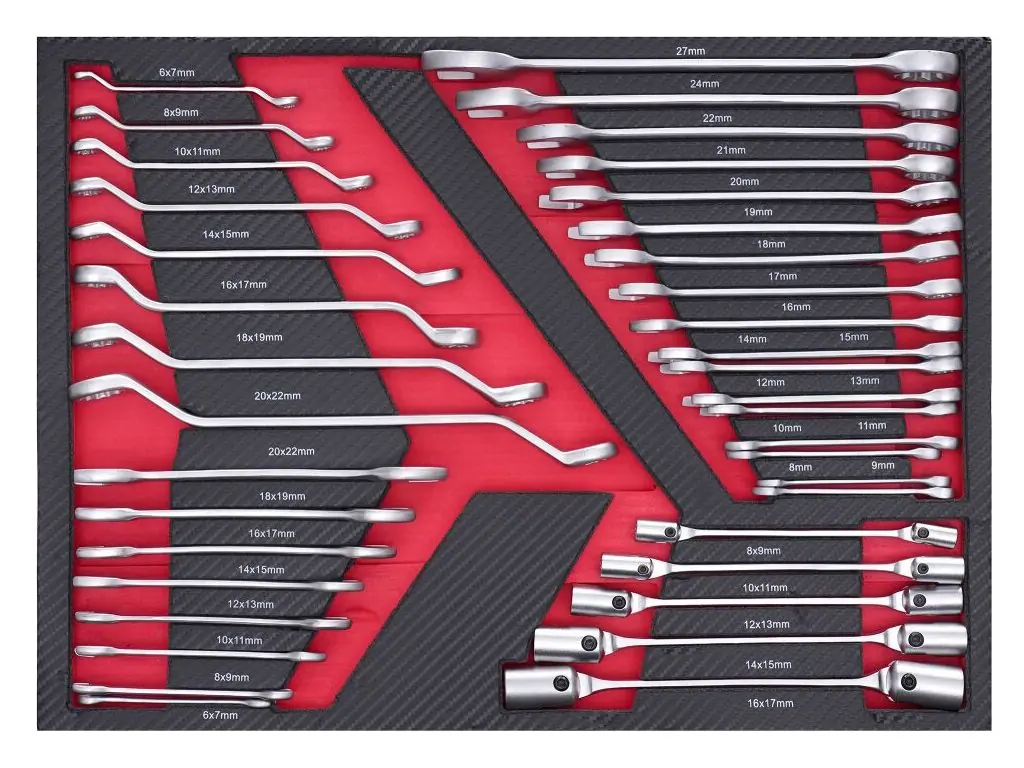 - Ключ накидной изогнутый (8 шт.): 6*7;8*9;10*11;12*13;14*15;16*17;18*18;20*22 мм