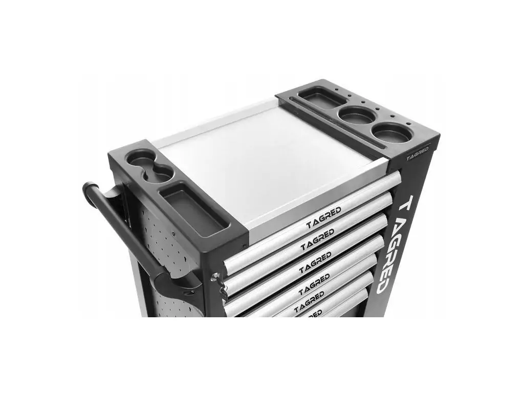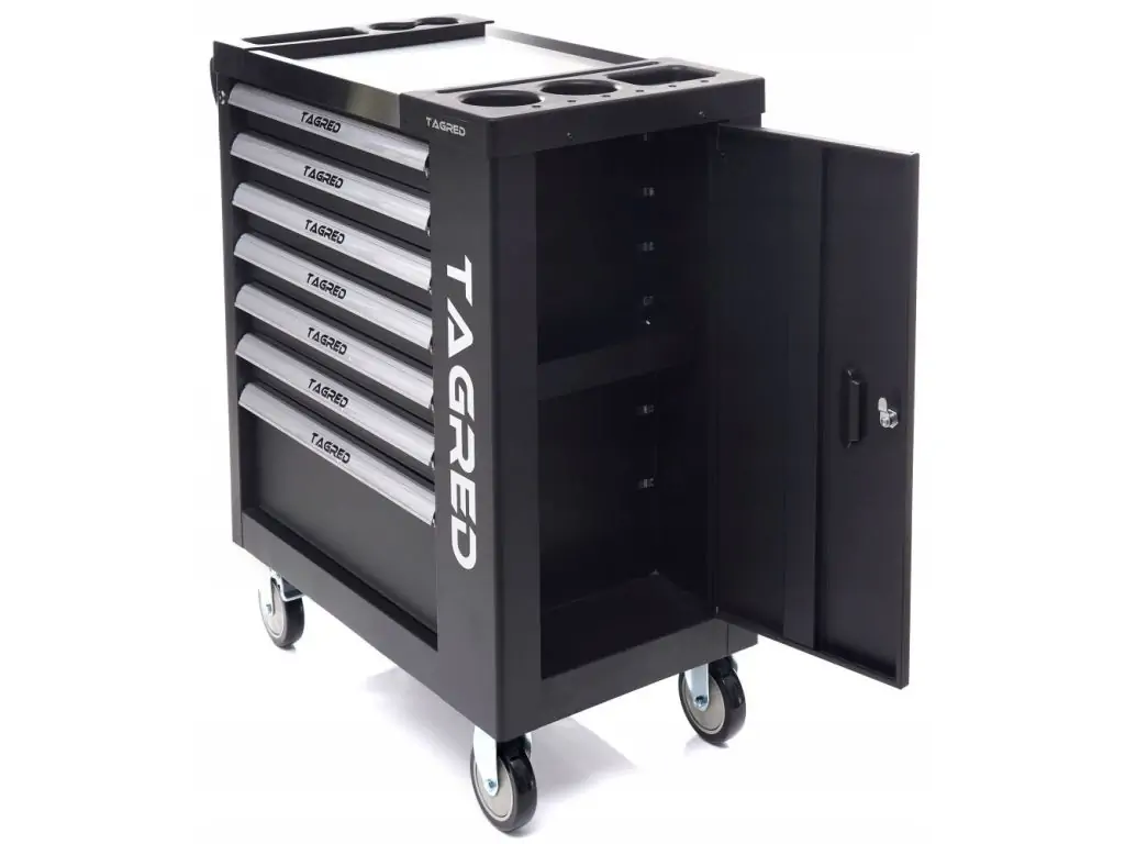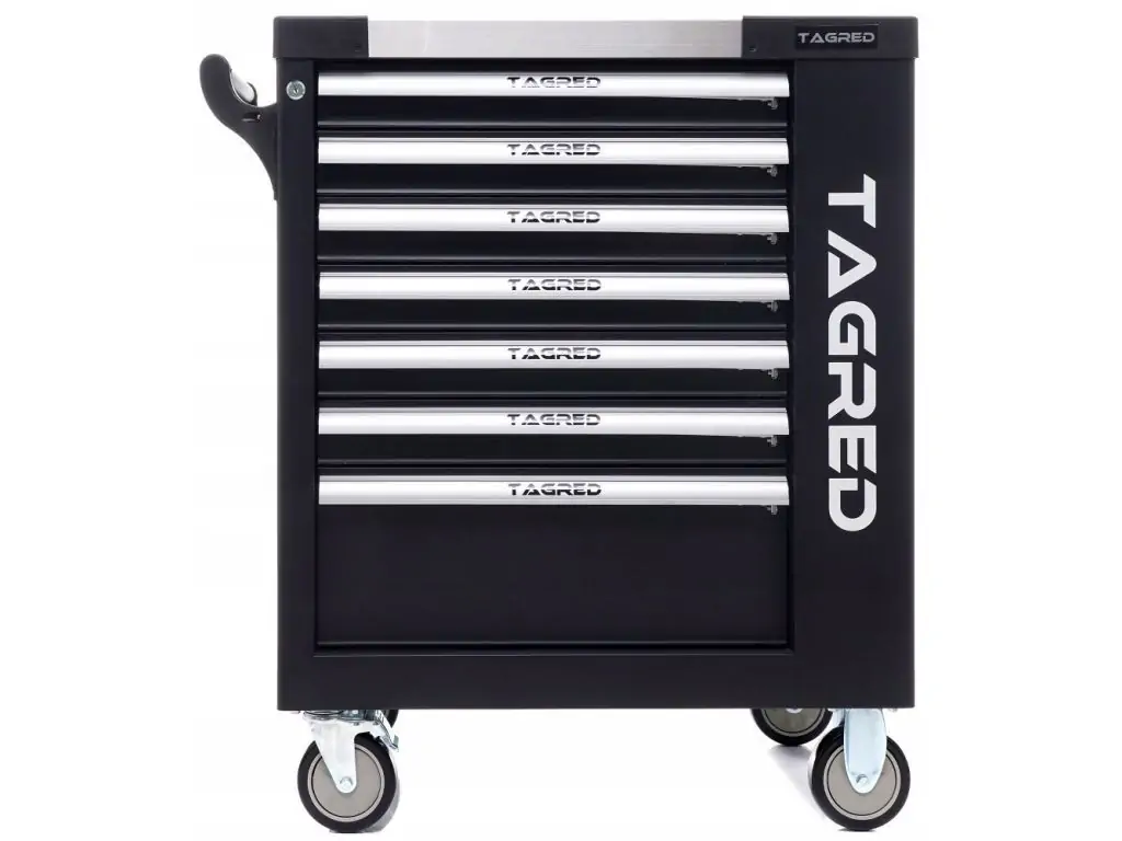 Тележка для мастерской TAGRED TA213 с 7 выдвижными ящиками на шариковых подшипниках и стальной столешницей отлично подойдет для хранения инструмента в профессиональной мастерской, на автосервисе или в собственном гараже. Большая вместительность позволяет удобно разместить инструменты, а прочные материалы изготовления и дополнительно укрепленные углы обеспечивают долговременную, надежную службу.