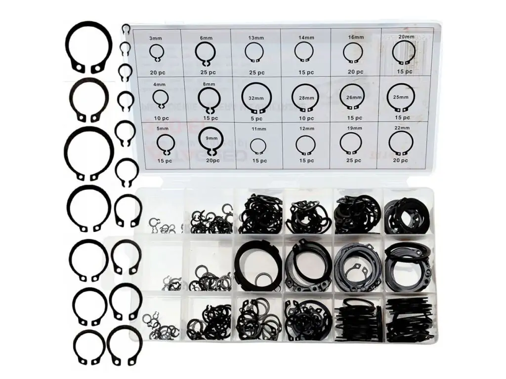 Набор стопорных колец TAGRED TA1402 – состоит из 300 наружных колец Seger. Кольца хорошо держатся и изготовлены из прочной упругой стали. Разнообразие размеров в наборе гарантирует, что вы найдете нужный размер. Набор можно использовать в каждой профессиональной мастерской.