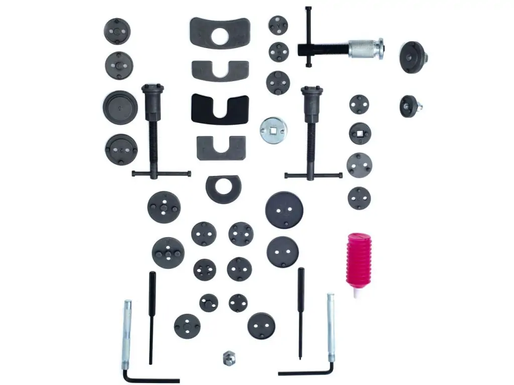 - Набор сепараторов для ручных тормозных суппортов приспособлен для работы вставных суппортов (передний тормоз) и винтовых суппортов (задний тормоз).