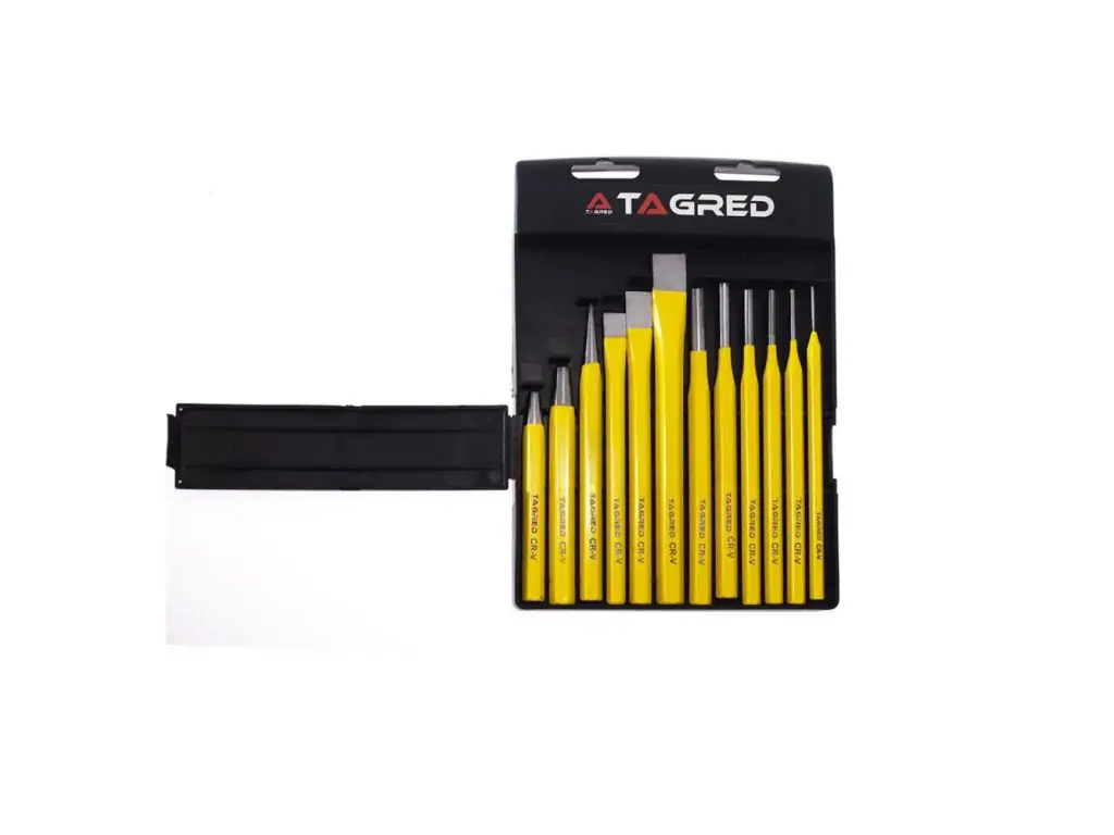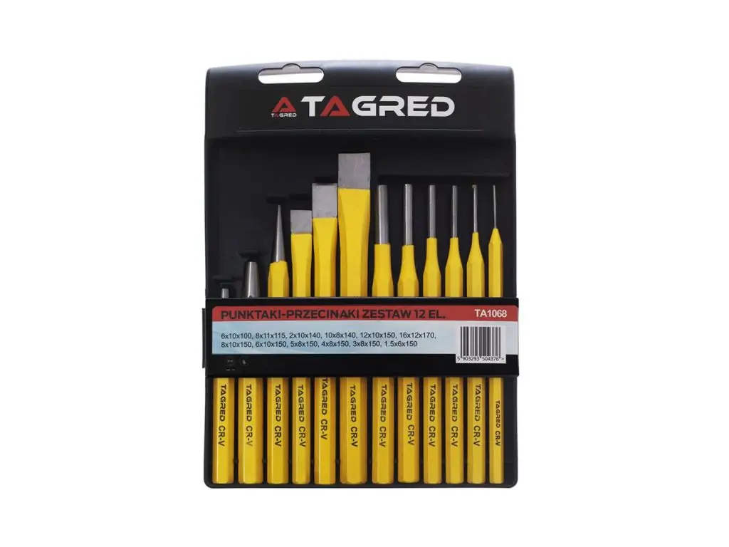 Набор зубил, кернеров и пробойников TAGRED TA1068 – изготовлен из высококачественных материалов, среди которых хромованадиевая сталь. Очень практичный и прочный, он будет использоваться в профессиональных и любительских мастерских.