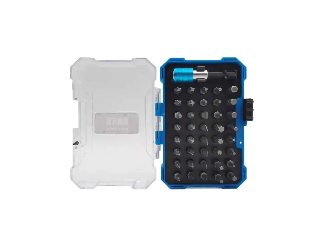 - Широкий ассортимент: В наборе представлены различные типы бит, включая плоские, Phillips, Позидрайвы, квадратные, Torx, и шестигранные. Это позволяет вам иметь доступ к разным инструментам во время различных видов работ.