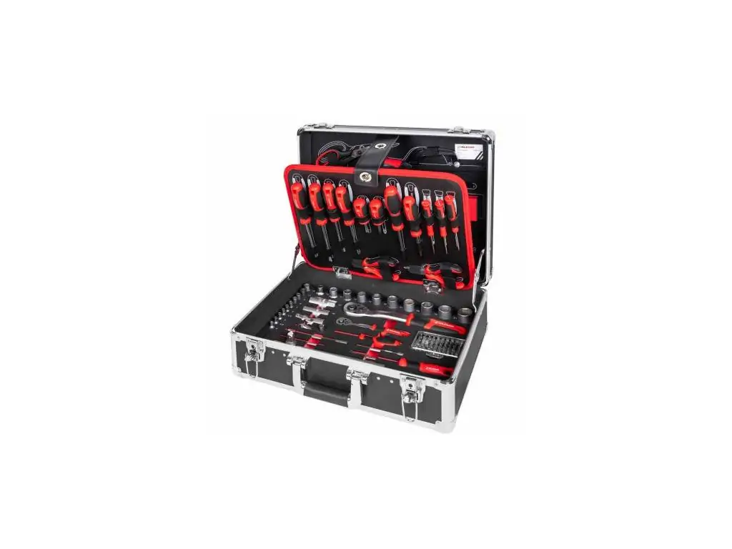 Ящик инструментов Holzmann WZK119ECO включает в себя 119 инструментов универсального назначения, удобно и компактно организованных в одно рабочее пространство. Станет полезным и функциональным приобретением как для собственного использования, так и мастерской любого профиля.