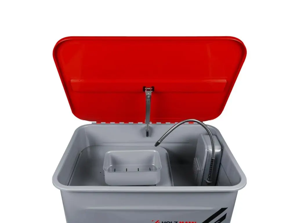 Насос мощностью 26 Вт обеспечивает скорость потока 2,7-3,3 л/мин. Мойка комплектуется гибким шлангом с насадкой, позволяющим удобно промывать детали и очищать ванну после использования, и отсеком для хранения аксессуаров. Компактная, стойкая и прочная конструкция из листовой стали удачно впишется в рабочее пространство и будет надежно и долго служить. Такая мойка для деталей машин доступна для заказа в нашем интернет-магазине.