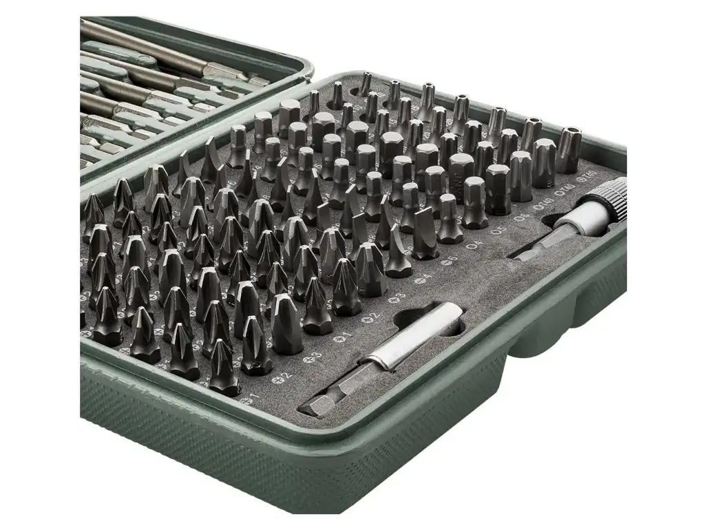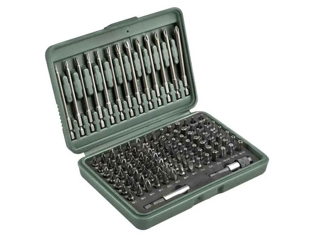 Этот профессиональный набор бит идеально подходит для ручных дрелей и включает в себя 113 бит различных типов для широкого спектра задач.