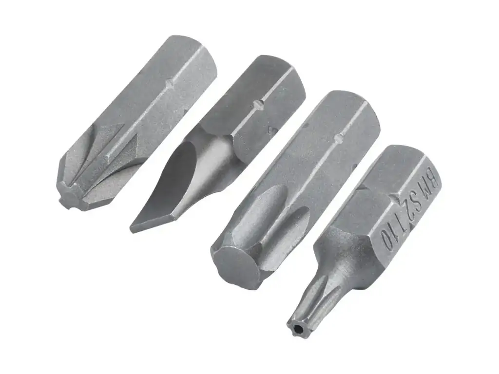 Изготовлены из закалённой стали S2, эти биты превосходят по твёрдости и стойкости к давлению CrV сталь (коэффициент твёрдости – 59 HRC, прочность – 220 кг/см²), что обеспечивает их высокую надёжность и долговечность.