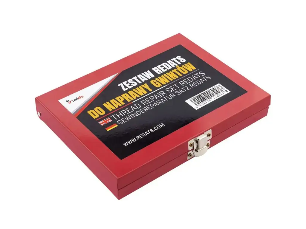 Набор для восстановления резьбы HSS 88 эл. REDATS содержит все необходимое для ремонта внутренней метрической резьбы в металлических деталях (88 элементов), упакованное в прочный кейс с органайзером. Подходит для 3 резьбовых типоразмеров (M6х1.0, M8х1.25, M10х1.5), наиболее распространенных в авторемонтных работах, что делает набор универсальным для автосервисов, ремонтных и монтажных мастерских, а также домашнего ремонта.