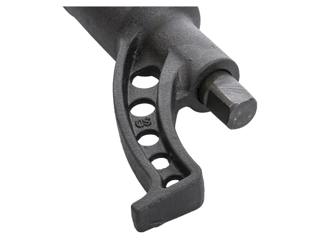Внутри корпуса установлен планетарный редуктор, который при вращении рычага передает момент через систему зубчатых передач, благодаря чему при приложении умеренного усилия на выходе получается мощный крутящий момент. Этот планетарный ключ для колес спецтехники не нуждается в сжатом воздухе или электричестве, что позволяет удобно использовать его на выезде.