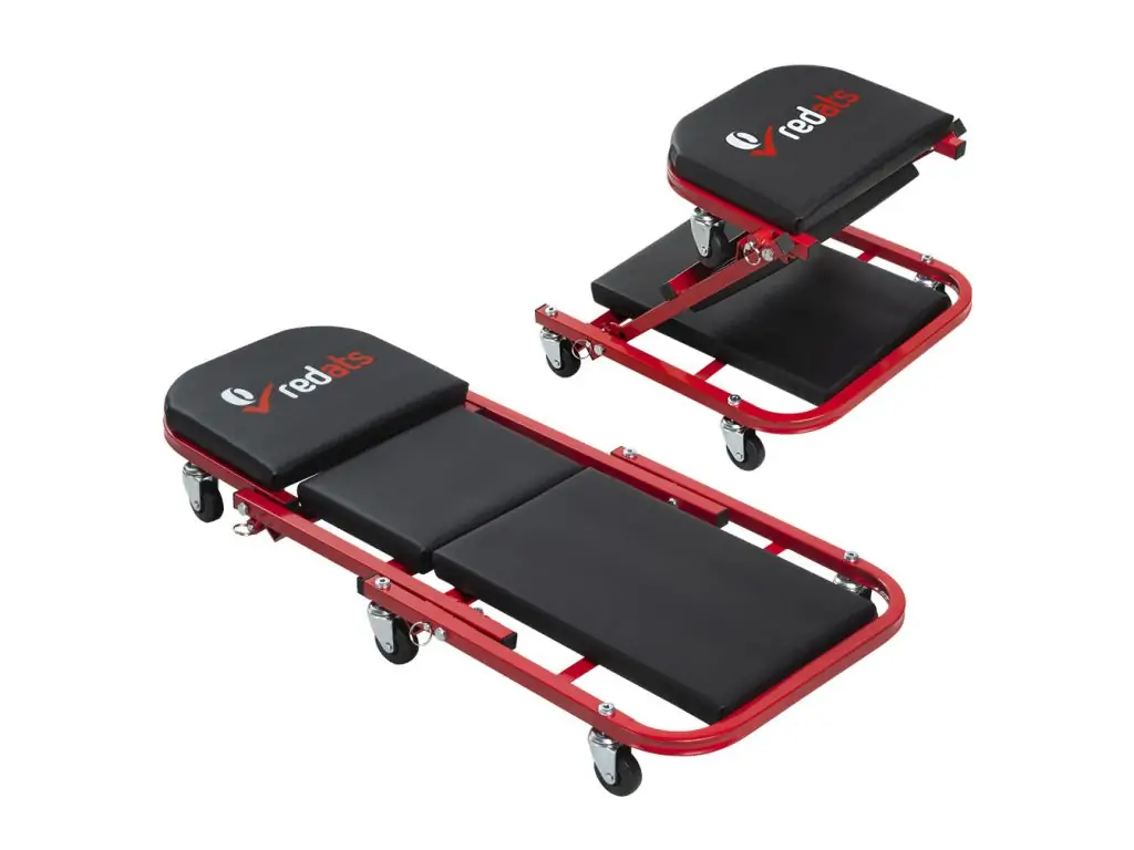 Лежанка-стул 3в1 REDATS - это многофункциональное оборудование для автомастерских и шиномонтажей, которое может использоваться в 3 режимах: сиденье (позиция L), стул со спинкой (режим Z) и лежанка (полная платформа). Смена режима осуществляется одним движением и занимает несколько секунд, что позволяет экономить рабочее время. Грузоподъемность в разных режимах отличается: режим L - до 100 кг, режим Z - до 120 кг, лежанка - до 150 кг.