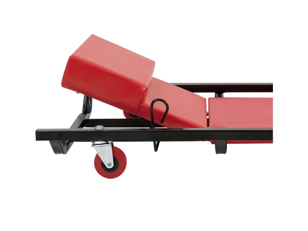 Лежак для автомеханика REDATS с 4-ступенчатой регулировкой подголовника и прочной конструкцией обеспечивает удобную работу под автомобилем, износостойкость и длительный срок службы. Каркас изготовлен из прочной стали и обладает высокой стойкостью к деформациям. Обивка изготовлена из приятной на ощупь экокожи, имеет привлекательный вид и легко очищается. Размер лежака 1017х428 мм обеспечивает поддержку тела в естественном положении, а высота 97 мм позволяет работать под низкими авто и дает удобный доступ ко всем узлам автомобиля.
