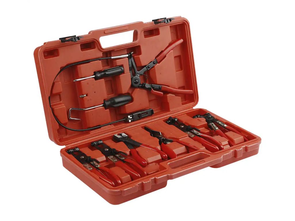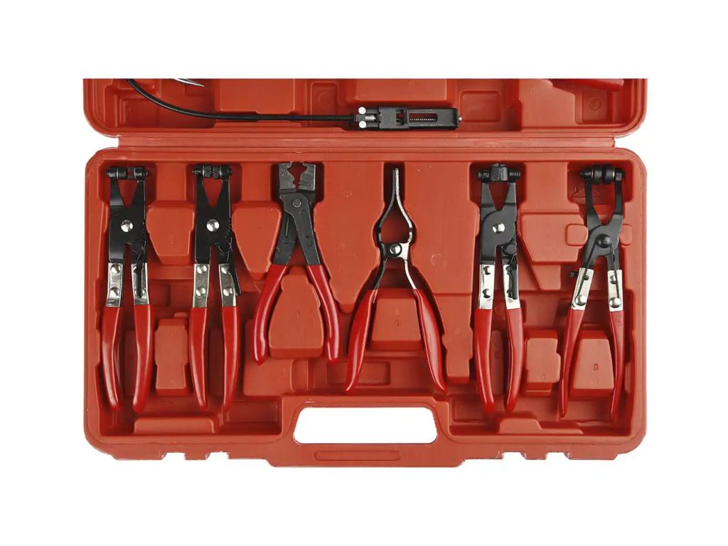 - Клещи для хомутов с поворотными рифлеными губками – рифленые губки для надежного удержания больших и малых хомутов под любым углом. Фиксатор в 5 положениях