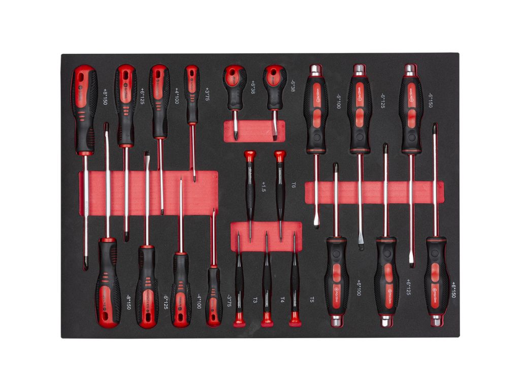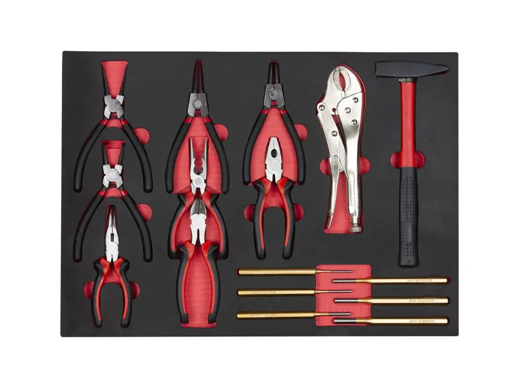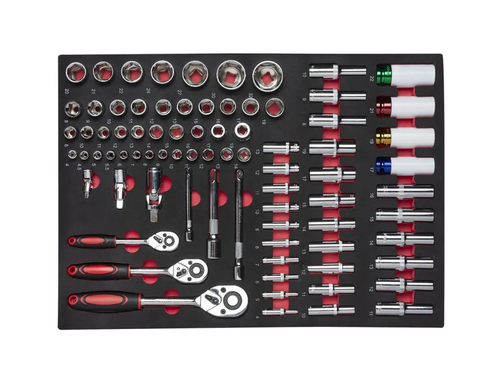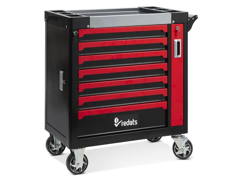 Тележка с инструментом REDATS 7+2 станет отличным приобретением для любой ремонтной мастерской, ведь она удобная, надежная и полностью укомплектована необходимым для работ инструментом в количестве 258 единиц. 7 вместительных ящиков с шарикоподшипниковыми выдвижными механизмами легко открываются, поэтому вы быстро получите доступ к нужным инструментам. Поролоновые ложементы предотвращают смещение инструментов при транспортировке, а центральный замок позволяет одним движением закрыть все ящики. 2 перфорированные стенки, одна из которых выдвижная, а вторая - боковая и закрывается металлической дверцей, позволяют хранить под рукой часто используемый инструмент.