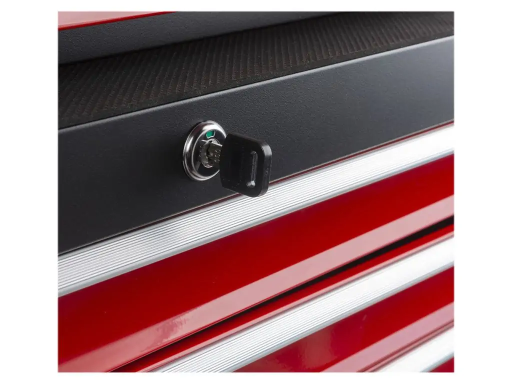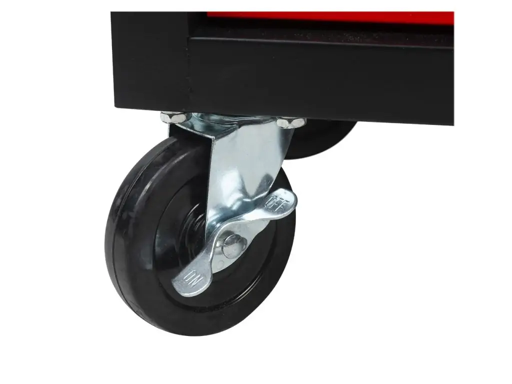 Конструкция изготовлена из качественного металла и имеет отличную стойкость к повреждениям и деформациям. Центральный замок позволяет одновременно закрыть все ящики, а 4 поворотных колеса с тормозом - легко перемещать тележку и надежно фиксировать ее в выбранном месте. Эта тележка с 2 секциями для инструмента позволяет быстро организовать рабочую зону и иметь все необходимое под рукой, поэтому будет чрезвычайно полезна для мастерской любого профиля. Поставляется без инструмента!