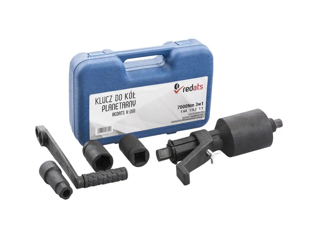 Планетарный ключ для колес REDATS K-180 с максимальным крутящим моментом 1000 Нм и передаточным отношением 1:16 отлично подходит для откручивания и закручивания креплений колес легковых автомобилей и микроавтобусов в дороге и других ситуациях, когда нет доступа к источникам энергии. Оснащен стандартным для легковых авто хвостовиком ½". Благодаря компактному размеру и весу 2,3 кг инструмент удобный в эксплуатации.