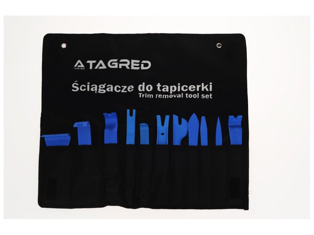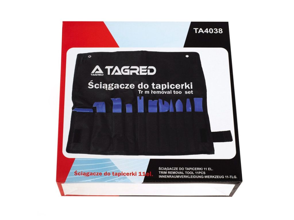 Съемники обивки, 11 шт TAGRED TA4038- изготовлены из стали и материала высочайшего качества. Позволяют аккуратно демонтировать обивку дверей, резиновые уплотнители, панель приборов, клипсы, шпильки и др. При правильной работе не оставляют стойких царапин, что важно для эстетики салона.