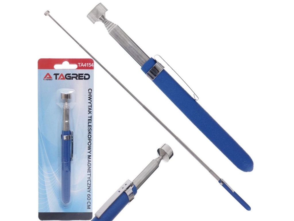 Телескопический магнитный захват TAGRED TA4154 - необходим в каждой мастерской или гараже, возле автомобиля, чтобы вытащить утерянные винты и гайки. Оснащен нескользящей ручкой. Компактный размер - помещается в карман брюк. Телескопическая рука длиной 60 см оснащена магнитом для подъема металлических предметов, таких как болты, гайки, шайбы и т.д. с грузоподъемностью 2,7 кг.