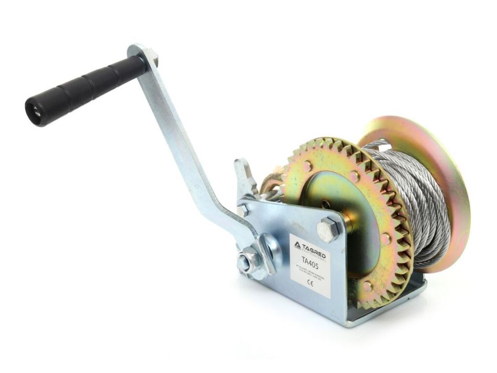 Кривошипная лебедка TAGRED TA405 – изготовлена из высококачественной конструкционной стали. Литый крюк имеет возвратную пружину. Для управления устройством используется ручная рукоятка, а также храповой механизм для втягивания и извлечения предметов. Идеальное оборудование для извлечения, связывания, закрепления и перетаскивания тяжелых и больших предметов. Имеет блокировочный крюк и предохранитель с храповой пружиной из закаленной стали.
