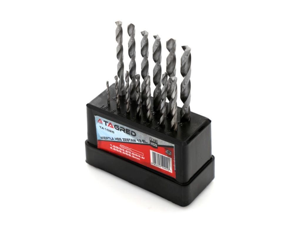 Набор сверл по металлу TAGRED TA1025, 13 шт – незаменимый набор для профессионального использования и в домашних мастерских. Сверла из быстрорежущей стали с символом HSS. Имеют цилиндрическую ручку и усиленную режущую кромку. Угол при вершине: 130°, направление резки – по часовой стрелке.