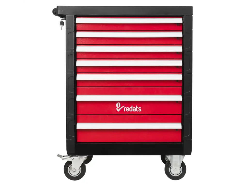 Профессиональная тележка для инструмента REDATS – это настоящая находка для мастерских разного профиля, ведь с ее помощью можно удобно организовать инструменты и всегда иметь все необходимое под рукой. 7 выдвижных ящиков разной высоты выдерживают нагрузку до 40 кг каждый. Ящики оснащены сетчатой поролоновой подкладкой, которая гасит вибрации и предотвращает скольжение инструментов при транспортировке. Все ящики можно одновременно запереть с помощью центрального замка.