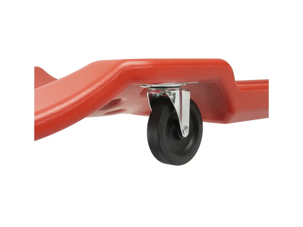 Лежанка изготовлена из качественного композитного материала, что обеспечивает ее износостойкость и надежность. 6 вращающихся роликов на подшипниках позволяют легко и плавно перемещаться даже в ограниченном пространстве. Отсеки для мелких инструментов с обеих сторон дают возможность держать все необходимое под рукой. Благодаря своей универсальности, практичности и удобству транспортировки и хранения такая мобильная лежанка для ремонта авто будет полезна как в профессиональном автосервисе, так и в собственном гараже.