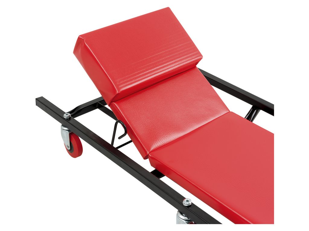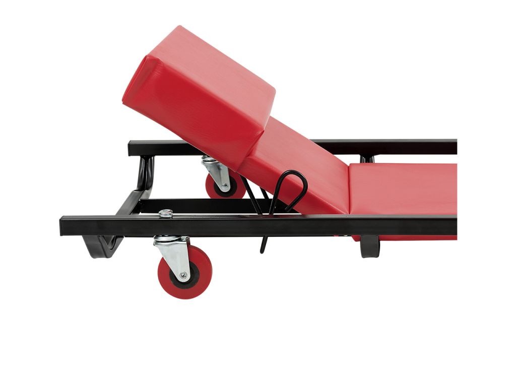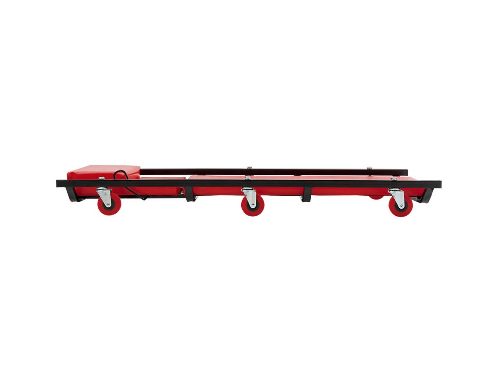 Лежак для автомеханика REDATS с 4-ступенчатой регулировкой подголовника и прочной конструкцией обеспечивает удобную работу под автомобилем, износостойкость и длительный срок службы. Каркас изготовлен из прочной стали и обладает высокой стойкостью к деформациям. Обивка изготовлена из приятной на ощупь экокожи, имеет привлекательный вид и легко очищается. Размер лежака 1017х428 мм обеспечивает поддержку тела в естественном положении, а высота 97 мм позволяет работать под низкими авто и дает удобный доступ ко всем узлам автомобиля.