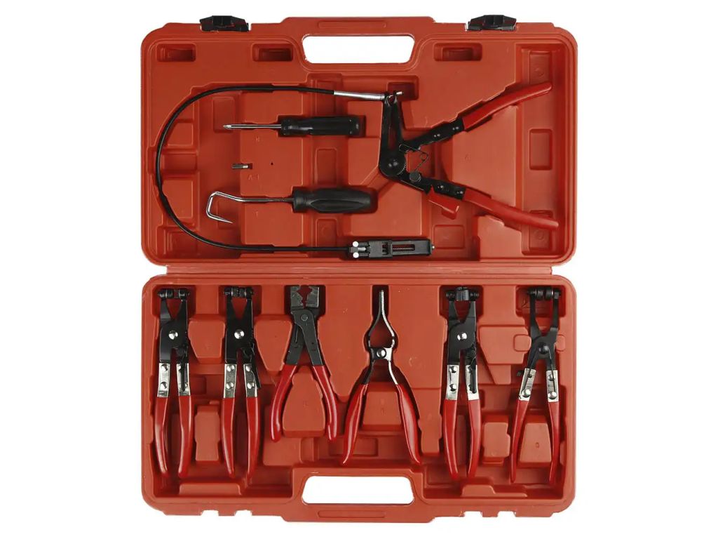 - Клещи для хомутов с поворотными рифлеными губками – рифленые губки для надежного удержания больших и малых хомутов под любым углом. Фиксатор в 5 положениях