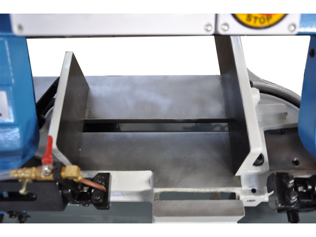 Для повышения эффективности работы станка установлен СОЖ. СОЖ – это смазочно-охлаждающая жидкость, которая отвечает за охлаждение полотна, что помогает избежать перегрева и соответственно растяжения и убывания его со шкивов, увеличивает срок службы полотна, поскольку при нагреве повышенная температура негативно влияет на твердость зубов полотна и ускоренного их затупления. Охлаждение позволяет работать при более высоких скоростях полотна без его перегрева, что улучшает производительность и эффективность резки.