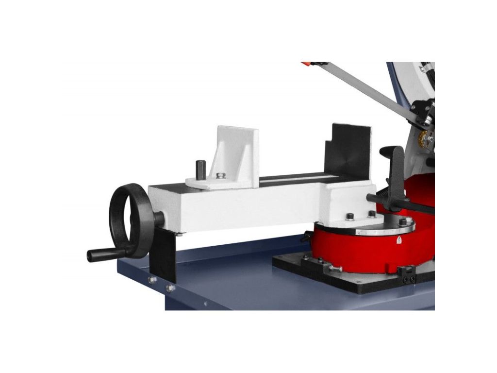 Данный станок оборудован ременной передачей, регулировка скорости происходит за счет опрокидывания ремня на соответствующий шкив. Регулировка скорости в ленточных пилах по металлу является важной функцией, так как она оказывает непосредственное влияние на качество и скорость работы с заготовкой. Регулировка скорости позволяет оператору адаптировать скорость резания к конкретному материалу, непосредственно влияющему на эффективность и качество обработки. Подбор соответствующей скорости поможет избежать перегрева полотна или заготовки, что способствует более длительному сроку службы полотна и ожидаемому результату от работы, а также регулировка помогает избежать излишней вибрации.