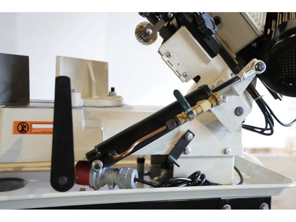 Гидроцилиндр, используемый для опускания головы ленточной пилы, обеспечивает плавное и контролируемое опускание головы ленточной пилы, что позволяет точно контролировать процесс резки. Также гидроцилиндр позволяет зафиксировать режущую голову на любой удобной для конкретной заготовки высоте, чтобы начало опускания головы происходило непосредственно над заготовкой, а не от крайнего верхнего положения .