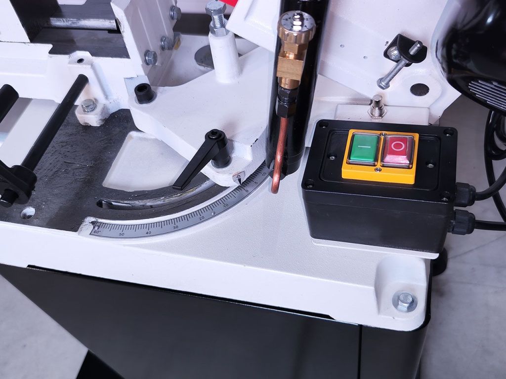 Трехфазный двигатель мощностью 550 Вт обеспечивает 3 скорости движения пильной ленты – 20, 29 и 50 м/мин. Режущая голова оснащена гидроцилиндром, который обеспечивает ее плавное и контролируемое опускание и позволяет зафиксировать режущую голову на нужной высоте. Корпус пилы устойчивый и прочный, есть резиновые накладки на ножках для минимизации вибраций и 2 колеса для транспортировки устройства. Эта и другие пилы по металлу ленточные представлены на сайте KMA.UA.