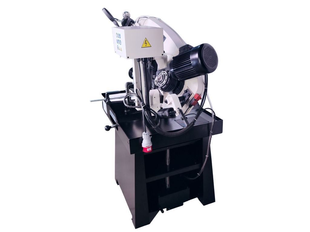 Движение пильной ленты происходит на 2 скоростях, 35 и 70 м/мин. Благодаря поворотной режущей голове можно производить распил под углом 45°, 60° и 90°. Высота пильной ленты составляет 27 мм. Подъем и опускание пильной рамы производятся оператором вручную, скорость опускания режущей головы регулируется с помощью гидроцилиндра. Тиски с эксцентриковым зажимом позволяют быстро зафиксировать и отпустить заготовку. Купить пилу по металлу MAST Metalltechnik M-BS320 400V вы можете в нашем интернет-магазине с гарантией 12 месяцев и доставкой по Украине.