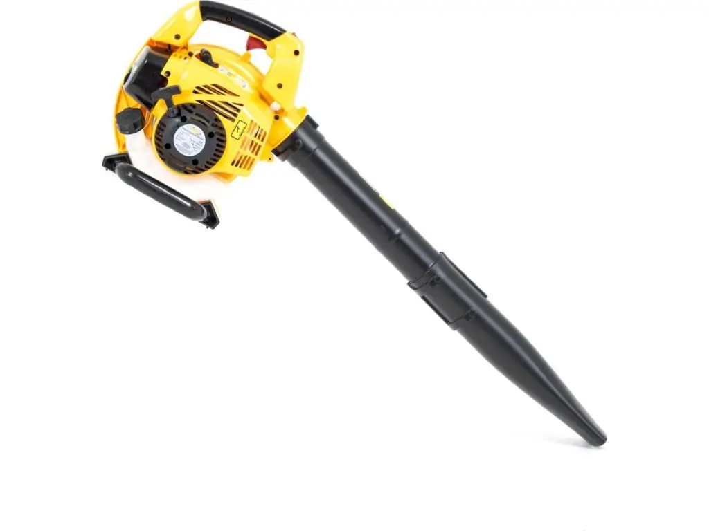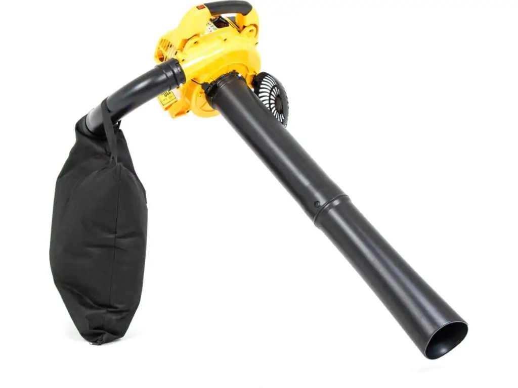 Оборудование работает на базе 2-тактного бензинового двигателя объемом 26 куб.см, мощность которого составляет 700 Вт. Объем топливного бака 0,44 л позволяет достаточно долго работать без дозаправки. Благодаря эргономичному дизайну и весу всего 4,6 кг этот садовый пылесос очень удобный в использовании.