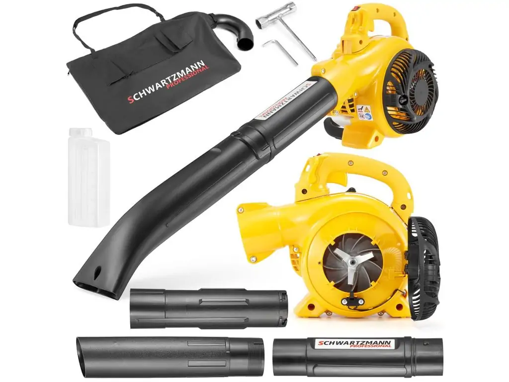Садовый пылесос-воздуходувка (3 кВт) SCHWARTZMANN SCH-BV3500 – высокопроизводительная садовая воздуходувка бытового класса, предназначена для легких и средних нагрузок при уборке садовых участков от листьев и мусора. Инструмент оборудован 2-тактным бензиновым двигателем с мощностью 3 кВт (4,1 л.с), благодаря которому на выходе воздуходувка выдает 730 м³/ч воздуха со скоростью 370 км/ч. В качестве топлива используется смесь бензина с моторной смазкой в пропорции 40:1 (на 1 л бензина 25 мл смазки).