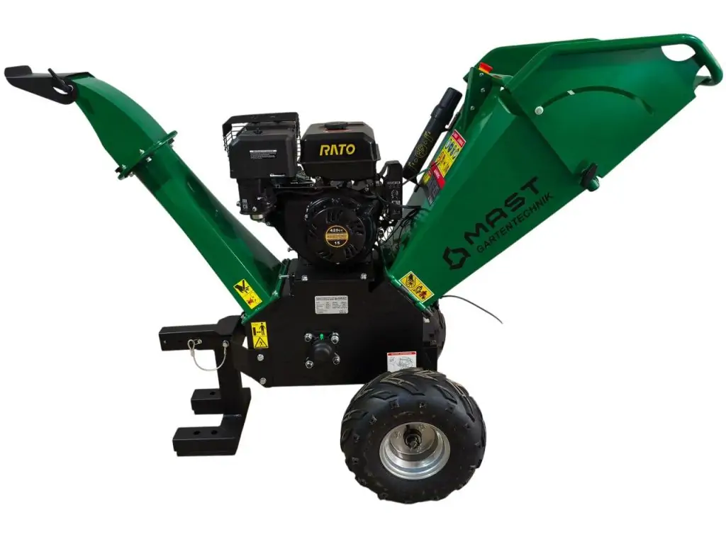 - Фаркоп и колесо спереди позволяют легко перемещать измельчитель