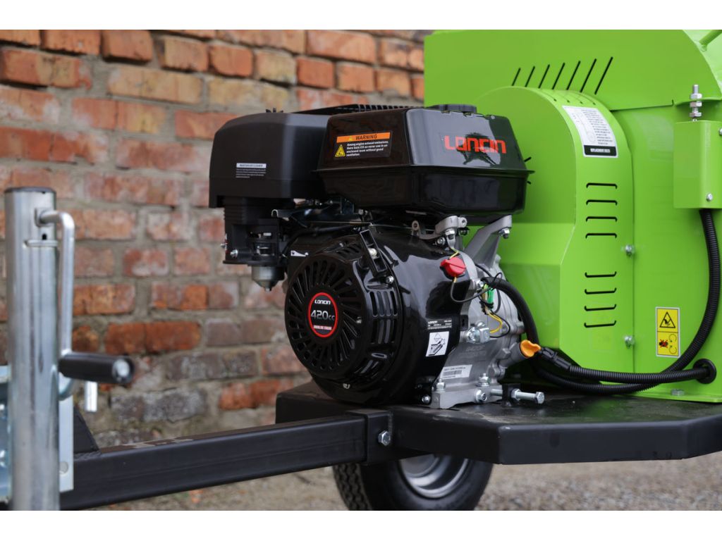 Оснащен бензиновым двигателем Loncin мощностью 13 л.с. и роторной системой измельчения с 2 вращающимися и 1 неподвижным лезвием. Быстро и качественно перерабатывает значительные объемы древесины, может длительное время работать без перерыва. Измельченный материал выбрасывается под давлением, благодаря чему рабочая зона остается чистой.