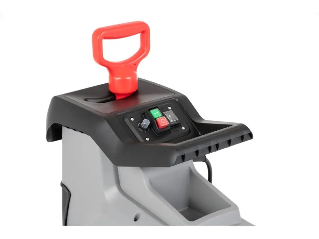 Управление машиной осуществляется через удобную панель управления, включая функцию реверса. Практический 50-литровый сборник и вырезы в корпусе позволяют контролировать уровень заполнения бункера, делая машину более удобной в использовании.