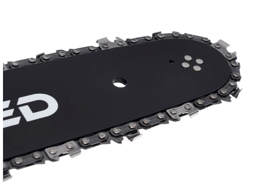 Цепи имеют специальное, устойчивое к истиранию покрытие, которое обеспечивает эффективную резку даже в тяжелых условиях. Режущие поверхности зубов изготовлены из твердых металлических сплавов, поэтому дольше остаются острыми без дополнительной заточки по сравнению с другими режущими цепями. Тонкие масляные каналы в направляющих звеньях собирают смазку и передают ее в шарниры бензопилы. В этих местах также размещен дополнительный резервуар для масла, обеспечивающий лучшую смазку и увеличивающий срок службы бензопилы.