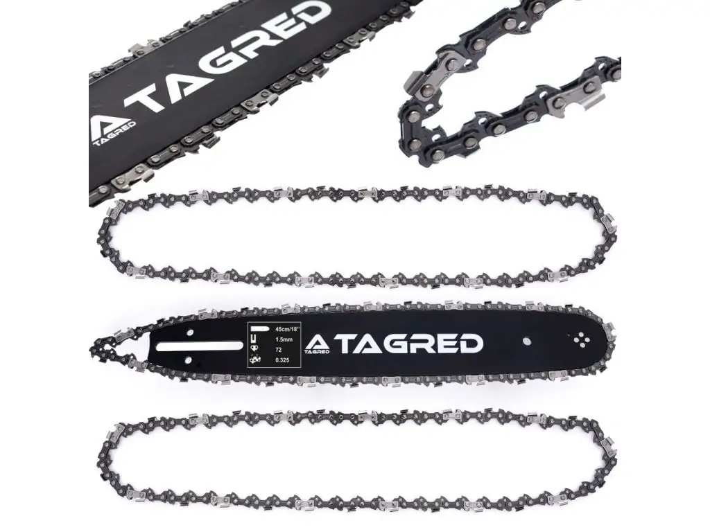 Комплект шины + 2 цепи 18"/45см/72/0,325"/1,5 мм Tagred TA1154- изготовлены из очень прочного материала, устойчивого к истиранию и высоким температурам, возникающим во время работы бензопилы. Они хорошо работают в сложных условиях, не повреждаясь. Они идеально передают мощность пилы на эффективность резки. Окончил шестерней.