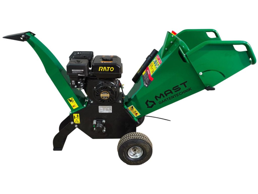 Бензиновый двигатель мощностью 6,5 л.с. экономно потребляет топливо и позволяет достигать производительности 4 м³/час. Переработанный материал выбрасывается из измельчителя под давлением, сохраняя чистоту рабочей зоны.