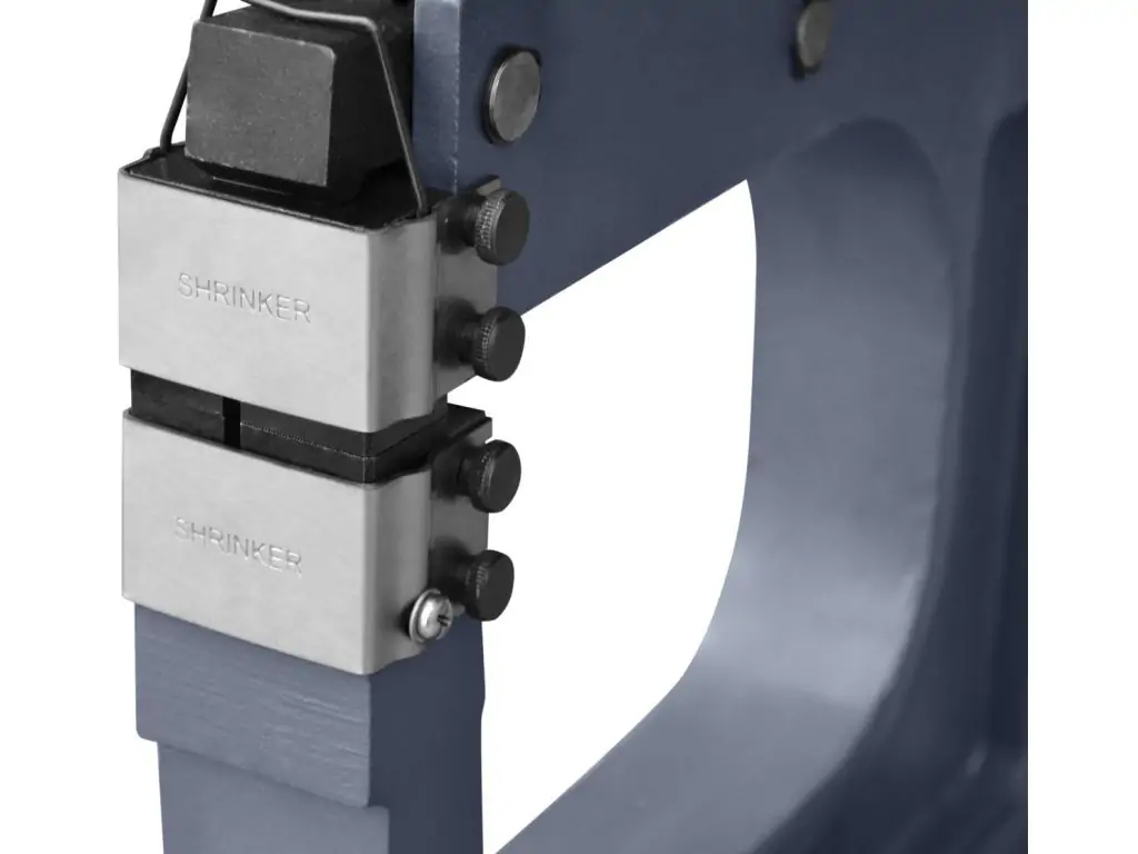 Шринкеры для металла имеют две челюсти, которые сжимают край металла малыми импульсными движениями, создавая морщинки. Эти морщинки укорачивают край и вызывают изгиб детали в нужном направлении.