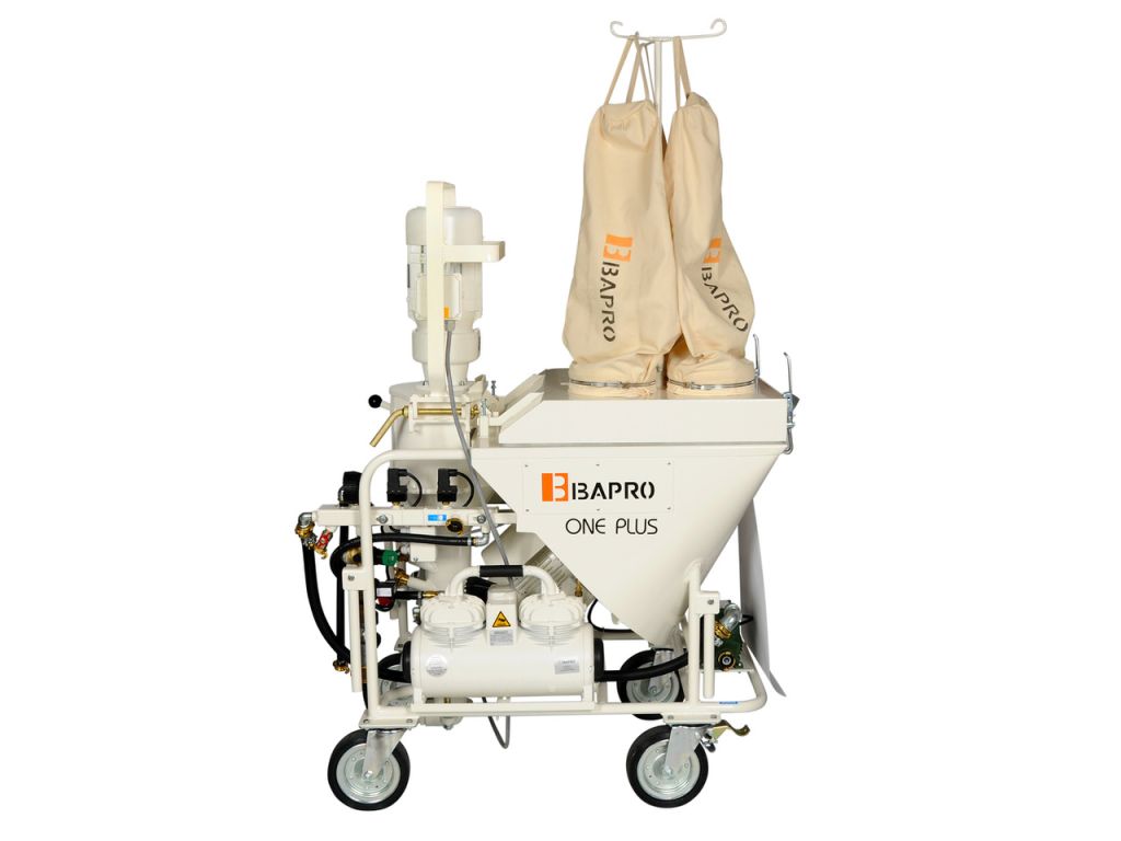 Штукатурная станция BAPRO one PLUS – это профессиональное, высокопроизводительное оборудование для автоматического смешивания и нанесения строительных растворов (гипсовые, цементно-известковые, декоративные, фасадные штукатурки), предназначенное для использования на больших строительных объектах. Особенностью модели является усиленный редуктор, усиленный приводной вал и подшипники, что позволяет работать с более абразивными и тяжелыми растворами.