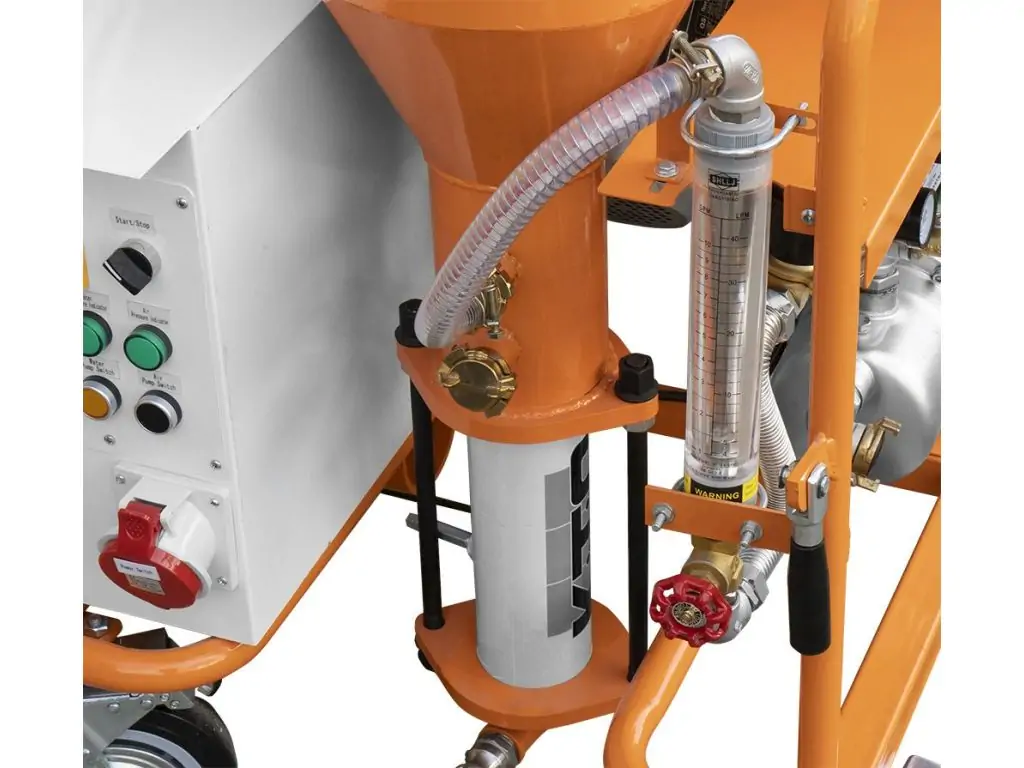 Ротаметр показывает реальный расход воды. Это позволяет точно настроить пропорции раствора и быстро повторить нужные настройки после остановок или на другом объекте.