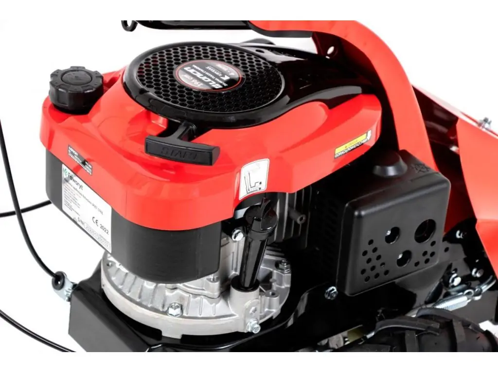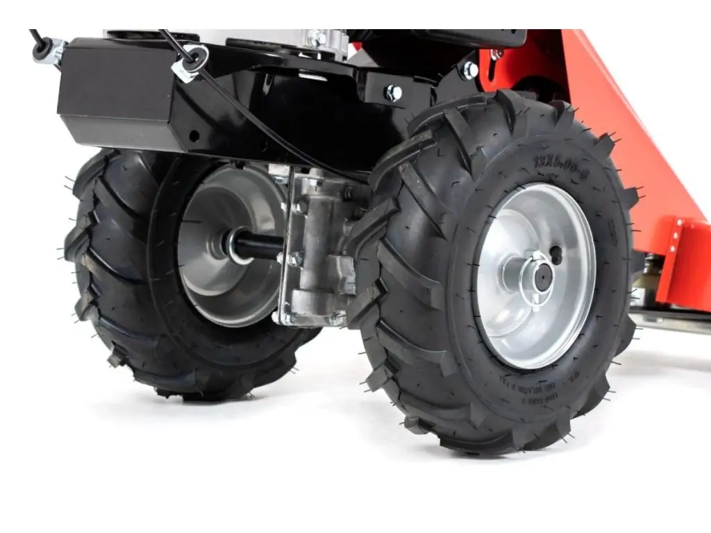 Бензиновая косилка Faworyt JK87-196L скашивает траву с помощью специальных подвижных ножей на косильном брусе. Кроме того, эта модель имеет 1 переднюю передачу, 2 больших колеса, привод, ручку газа и рычаг старта.